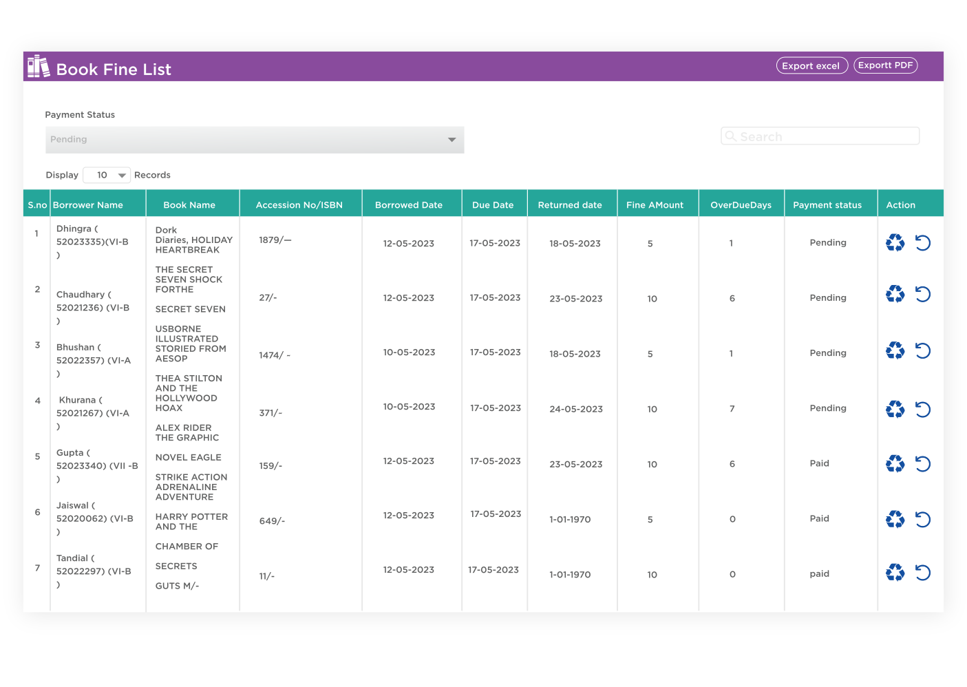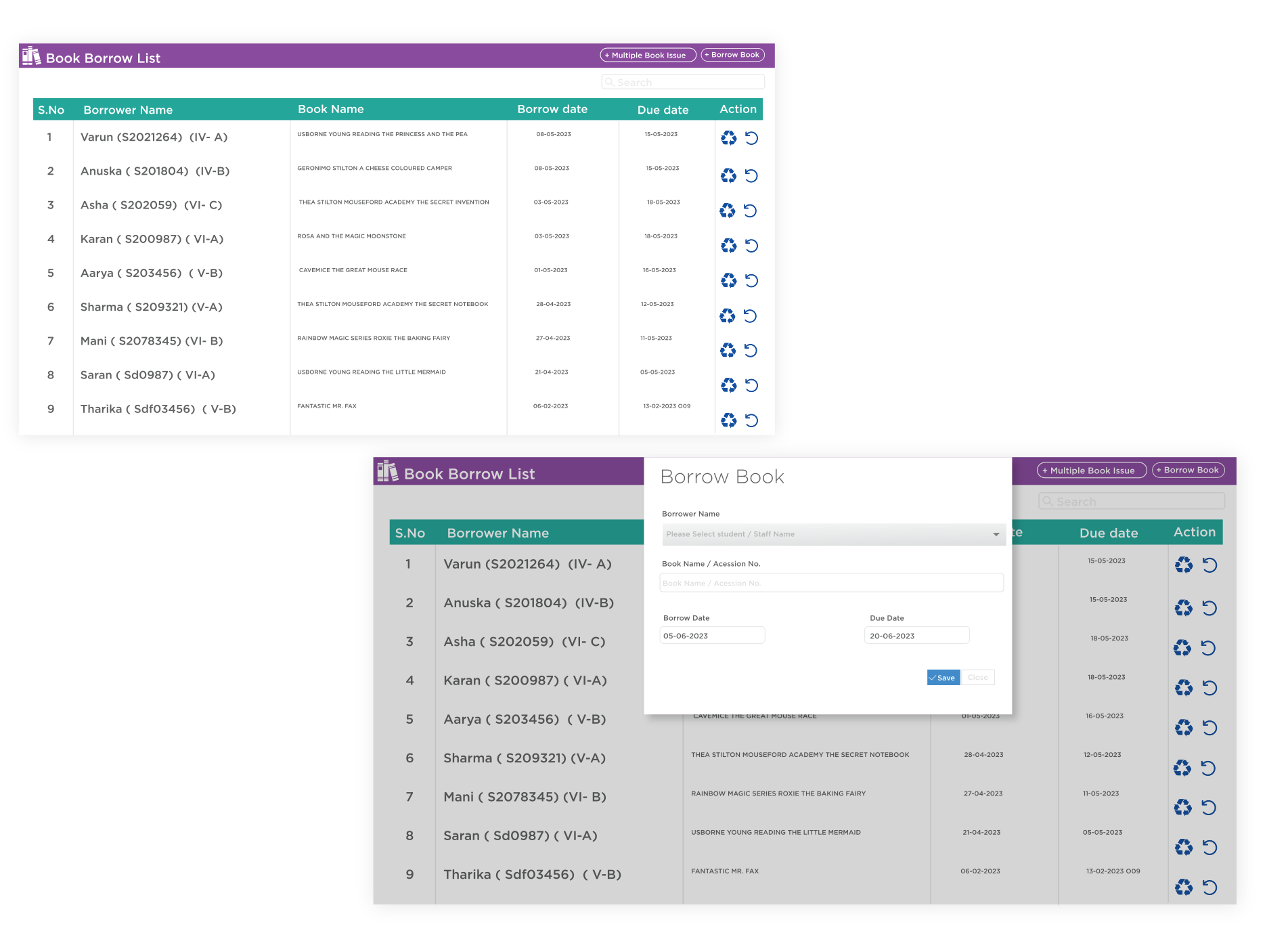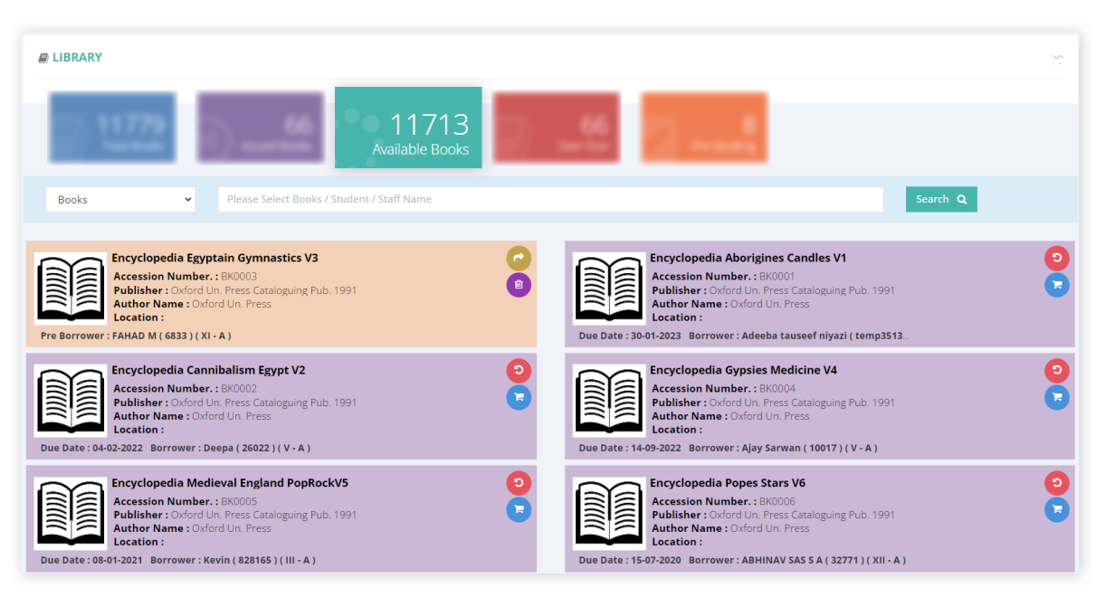 Effortlessly manage book issue and return procedures with our library management system, enabling you to track the number of books available and assigned to students and educators. Streamline all book-related information, in one place.